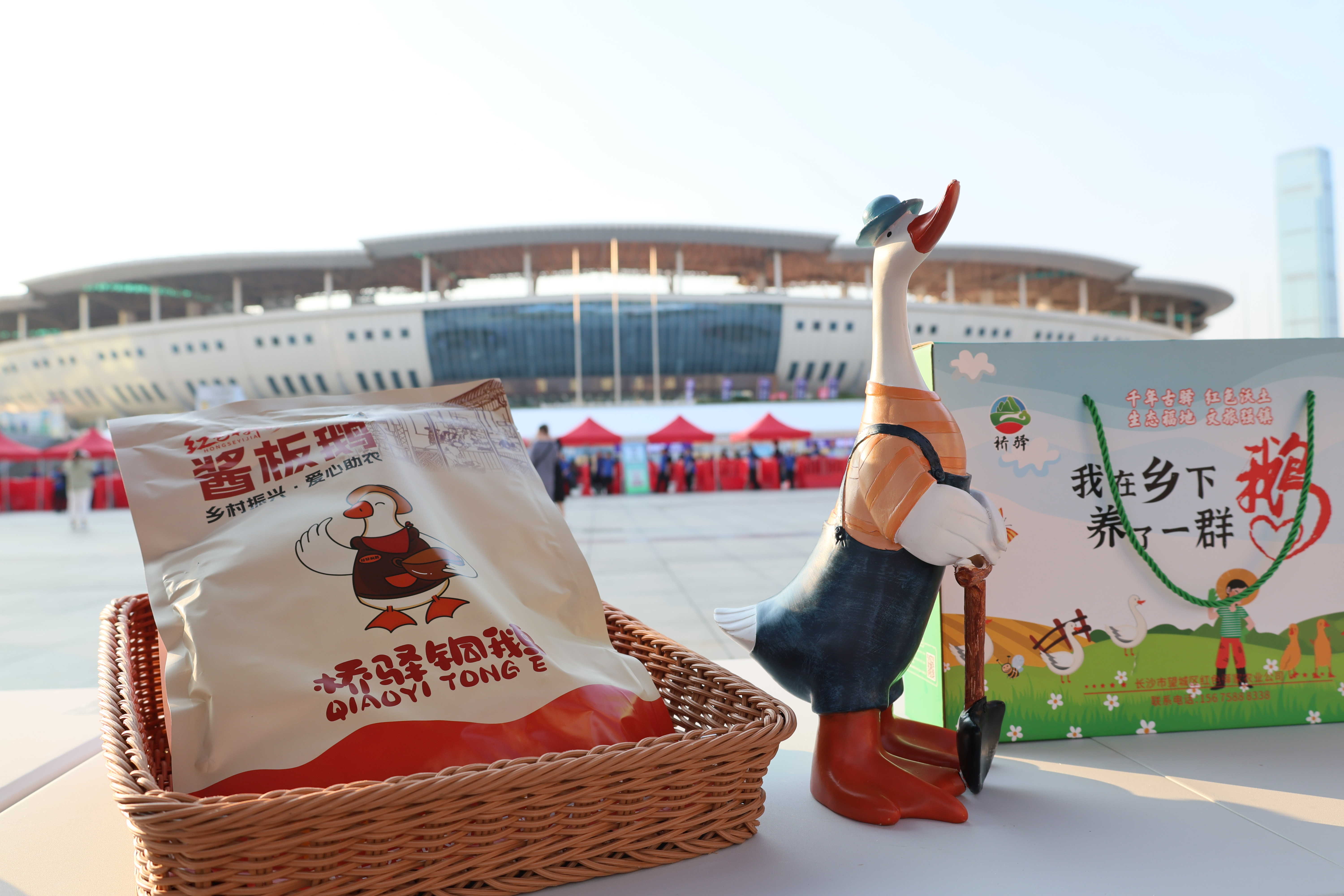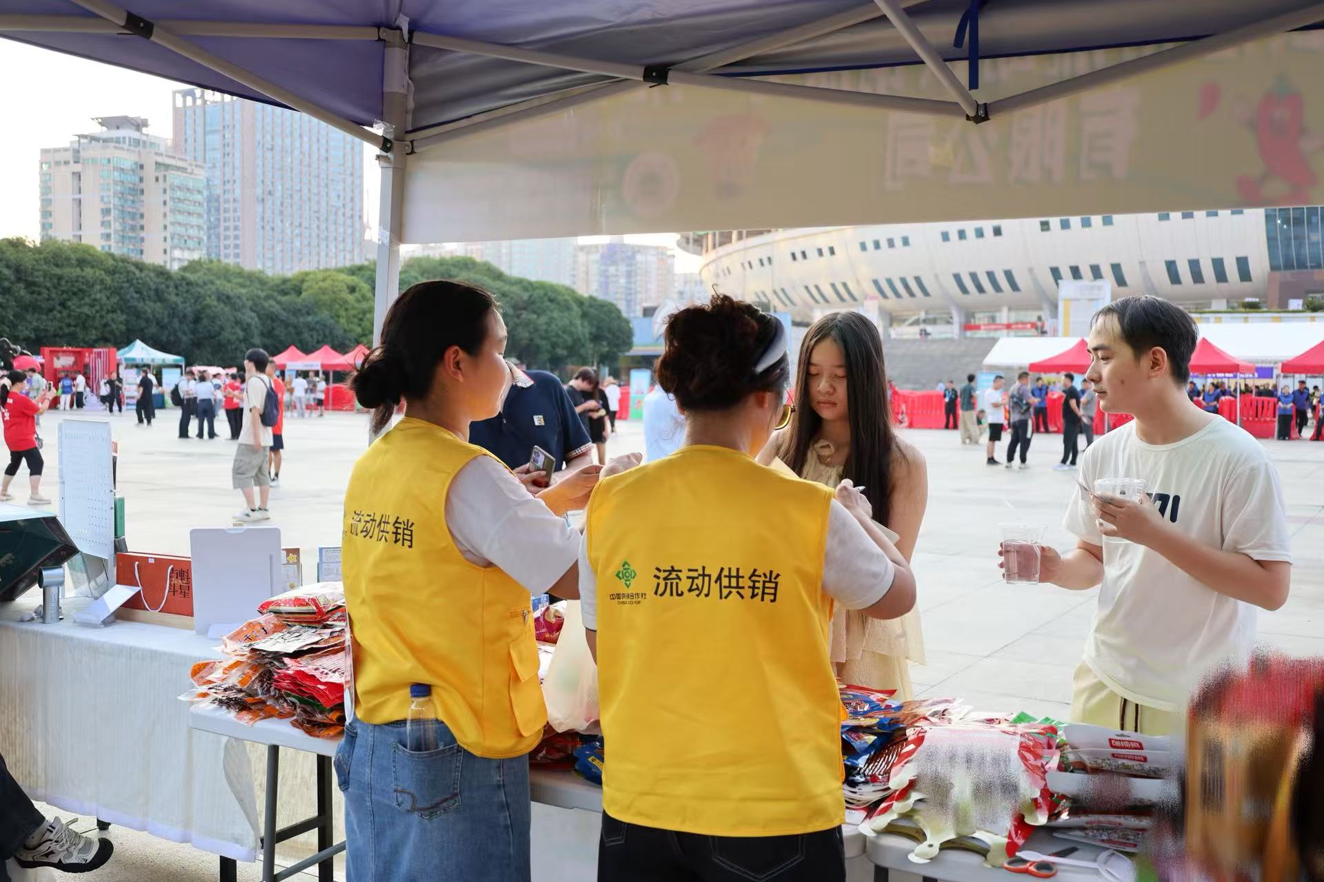 在賀龍體育場東廣場,供銷大集為前來觀賽的球迷朋友們,提供了一個精致的“湖湘風味體驗館”:望城鲌魚、靖港香干、橋驛銅鵝、糯米酒、搖搖蜂蜜水等長沙本地農特產品悉數“上場”。市民王女士邊選購邊感嘆:“看球賽還能品嘗長沙風味,體驗更豐富了!”