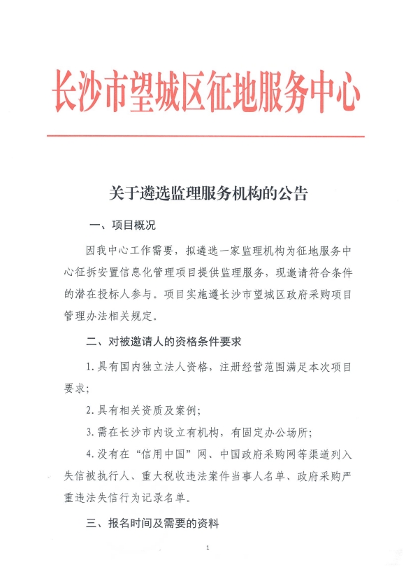 關(guān)于遴選監(jiān)理服務(wù)機(jī)構(gòu)的公告