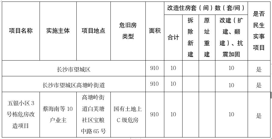 根據工作安排,現將2025年長沙市望城區城市危舊房改造計劃名單向社會公示。