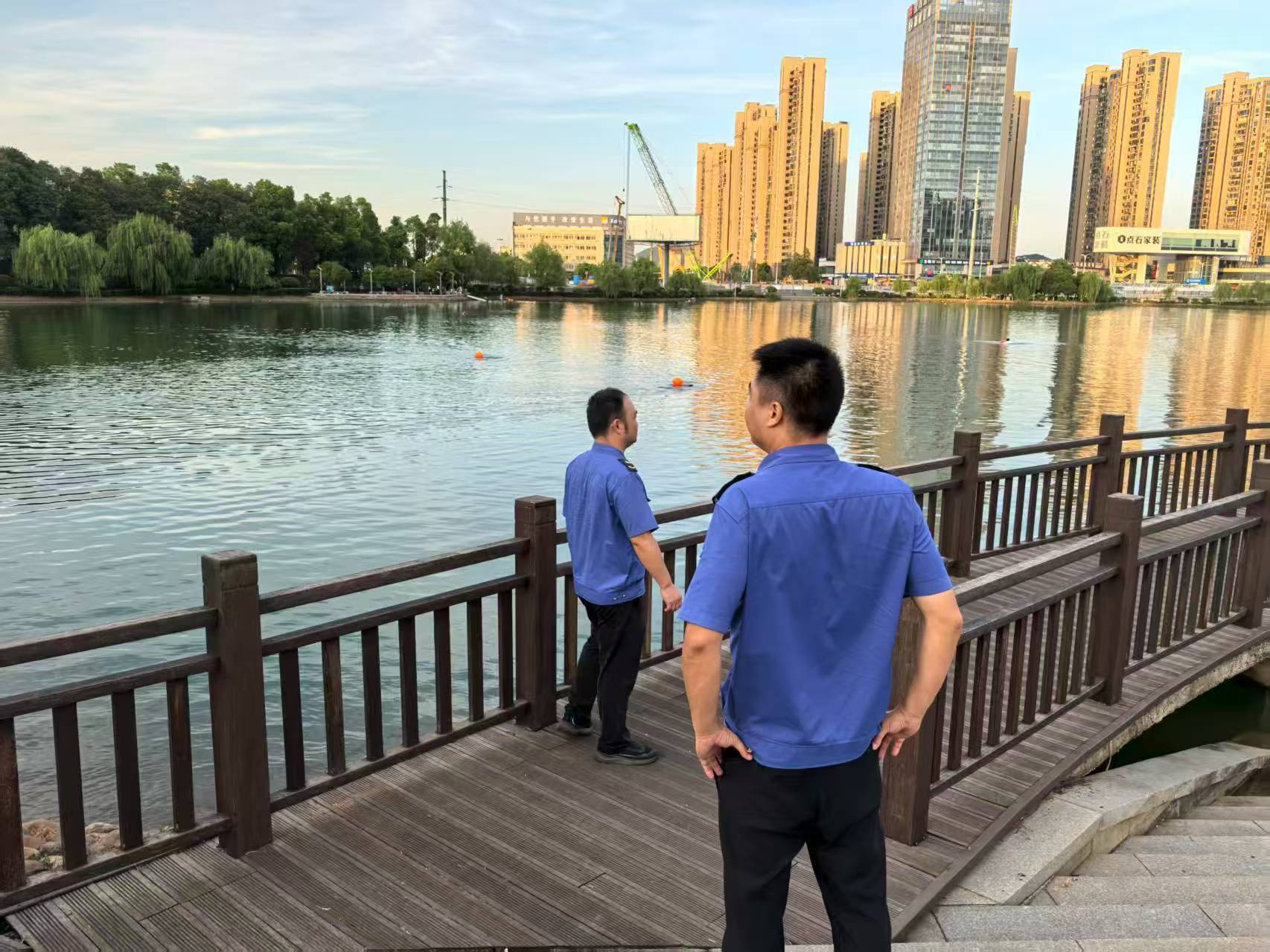 強化聯動管控機制,整合中心、街道、社區、公園安保力量,實現水域管理全覆蓋。開展常態化巡查,明確巡查路線和重點區域,及時糾正危險親水行為,在暑期、節假日等人流高峰時段增派人員,加強兒童活動區域值守。2025年以來,通過聯合執法累計勸阻危險行為50余起,有效防范安全風險。