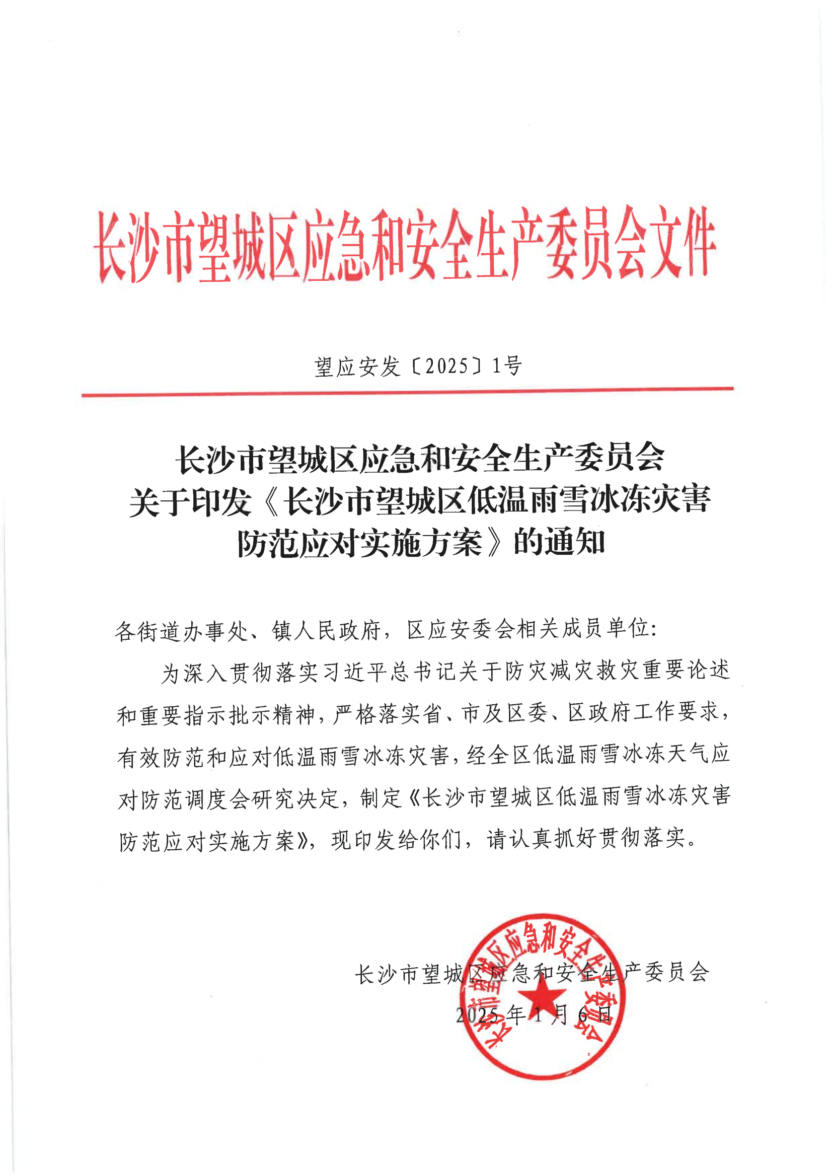 長沙市望城區應急和安全生產委員會關于印發《長沙市望城區低溫雨雪冰凍災害防范應對實施方案》的通知