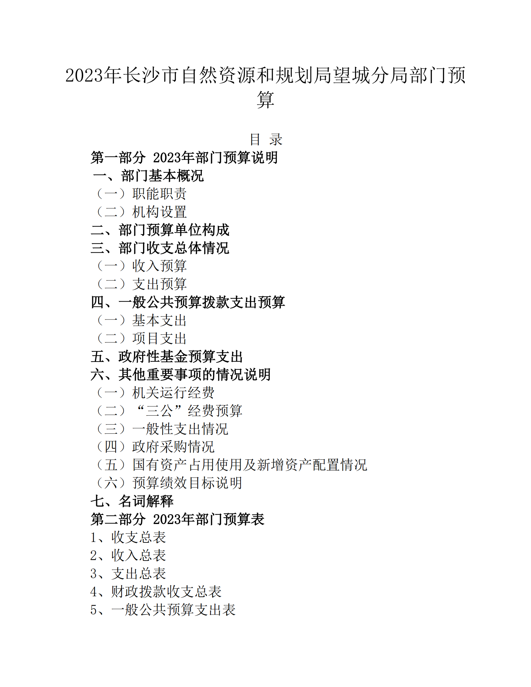 2023年長沙市自然資源和規劃局望城分局部門預算