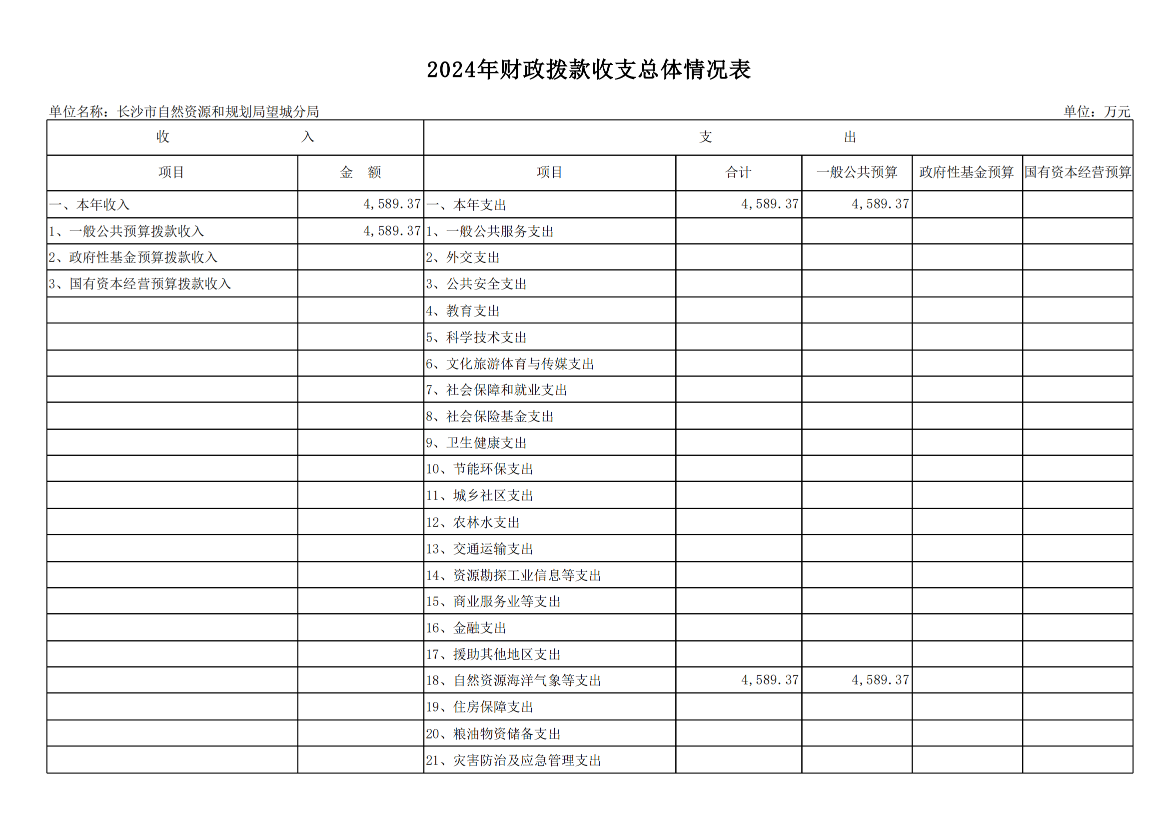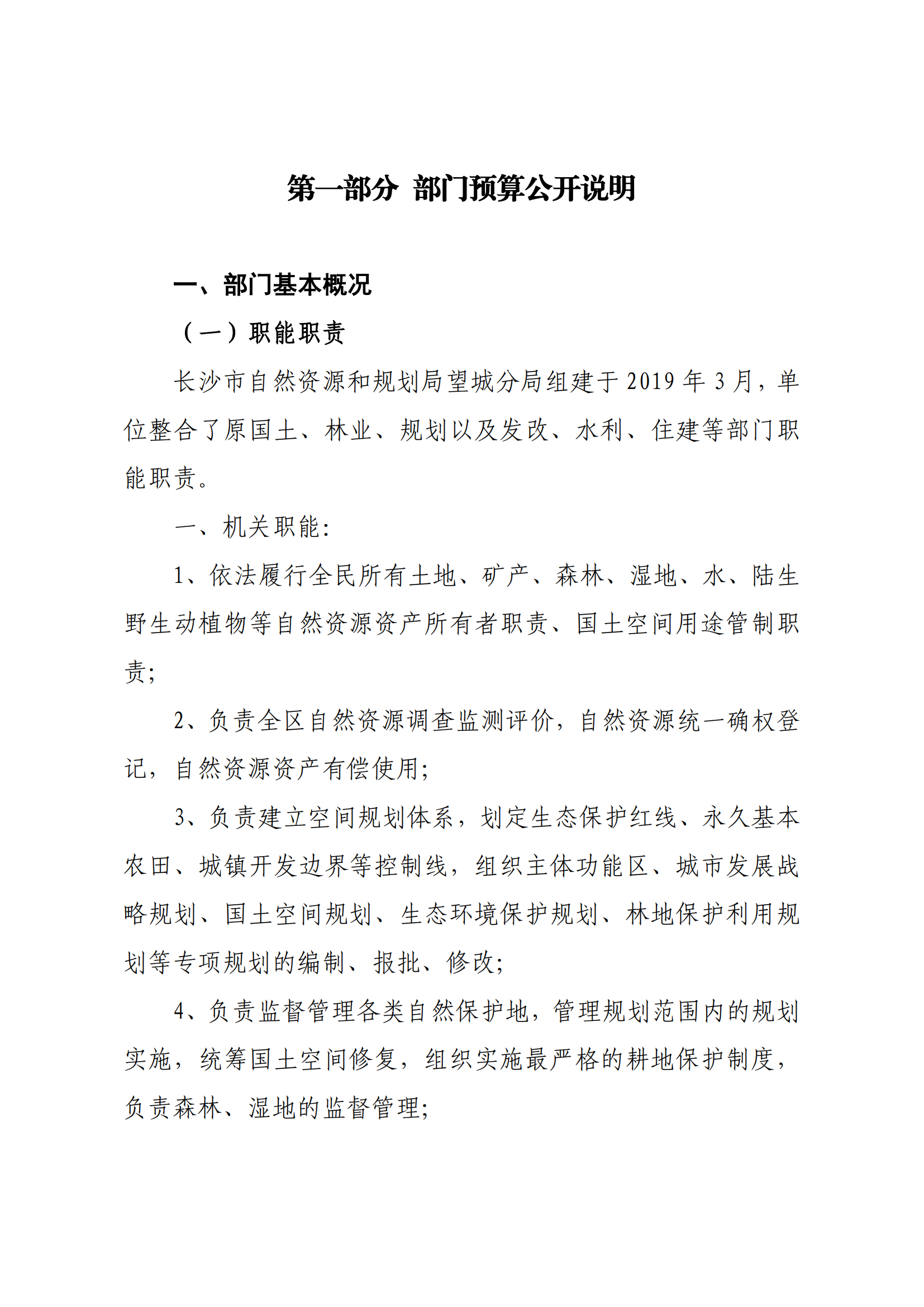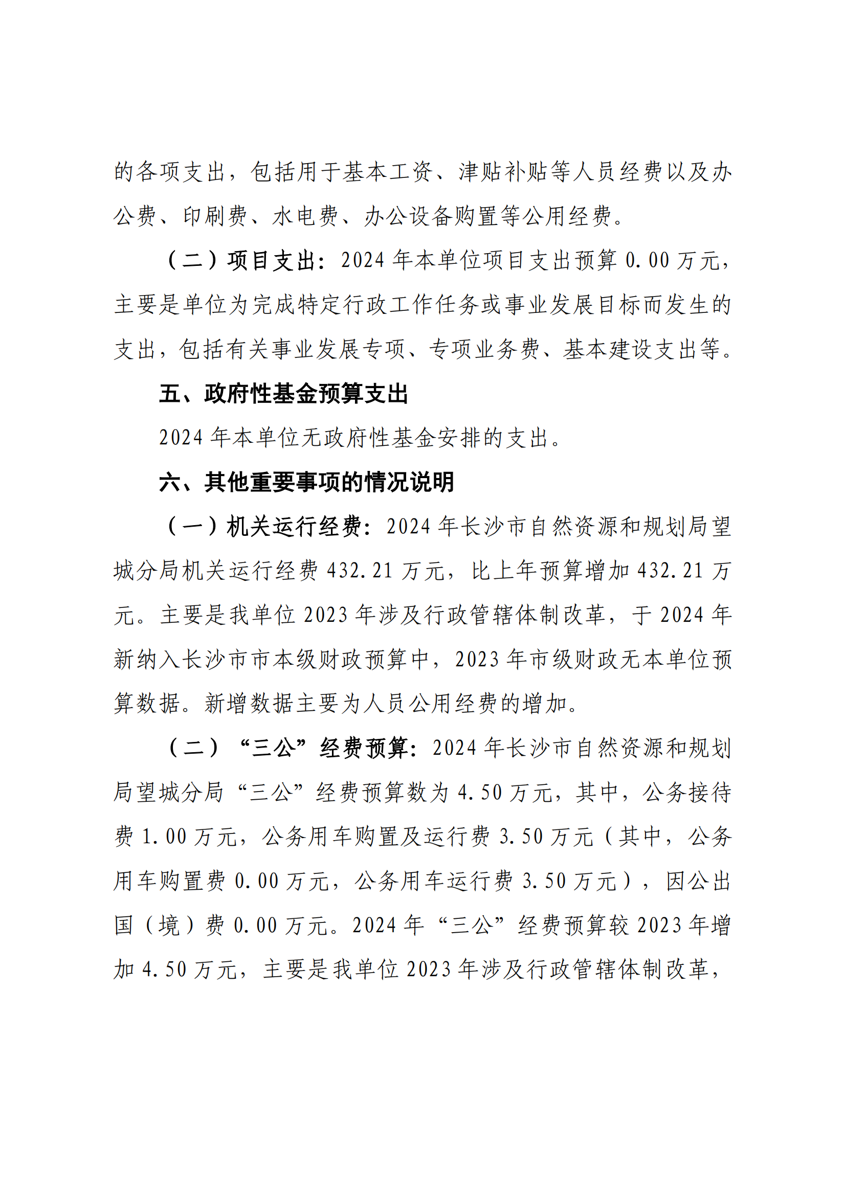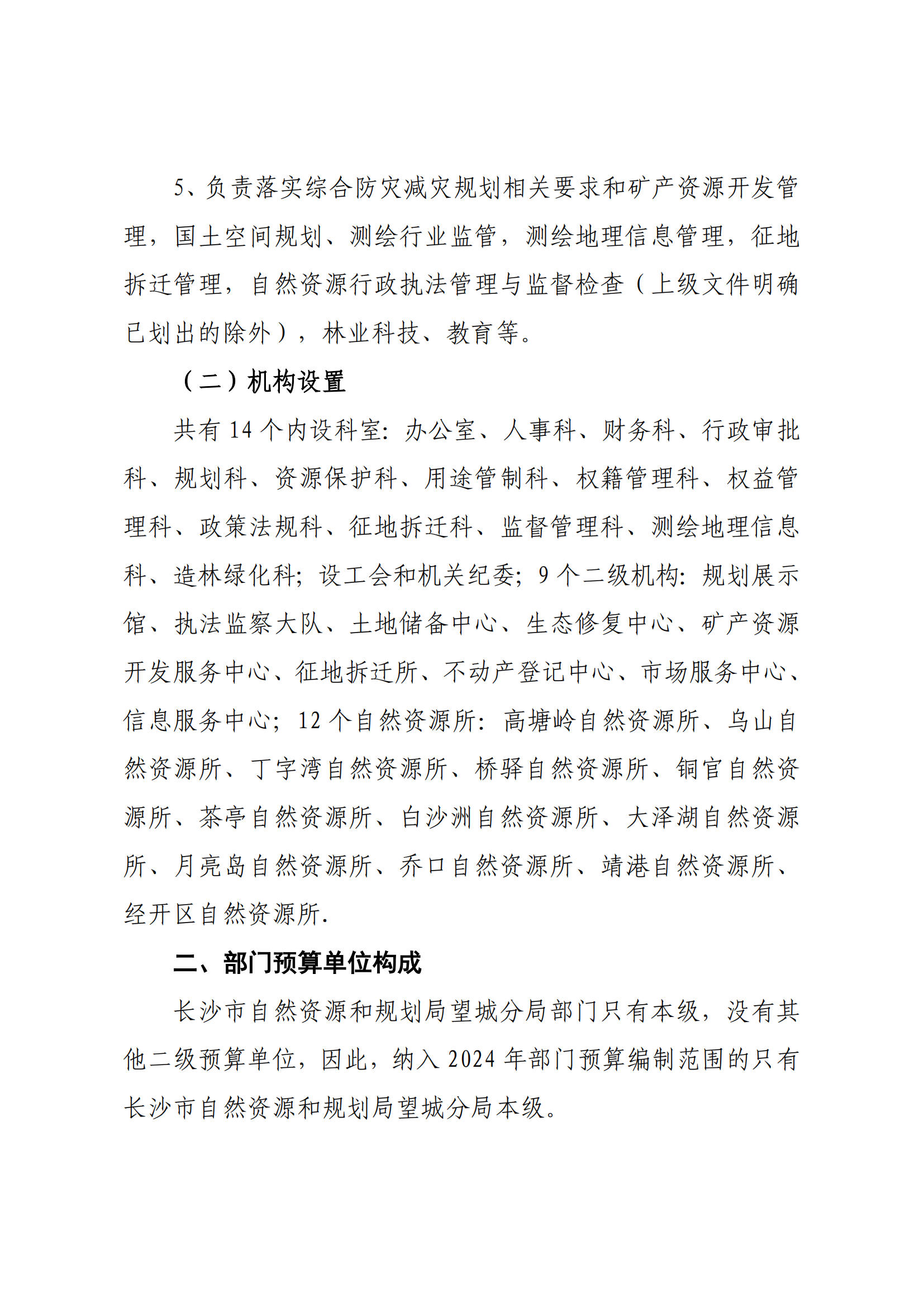 長沙市自然資源和規劃局望城分局 2024 年部門預算公開