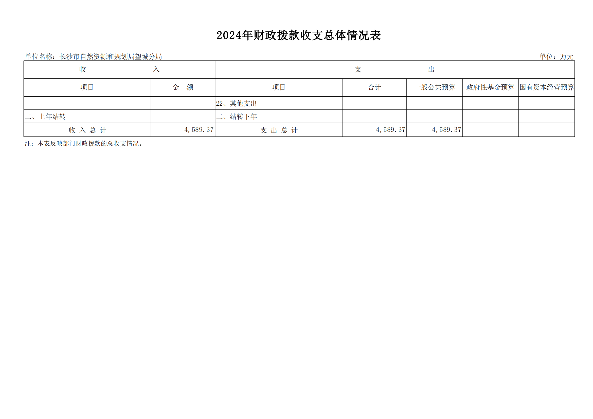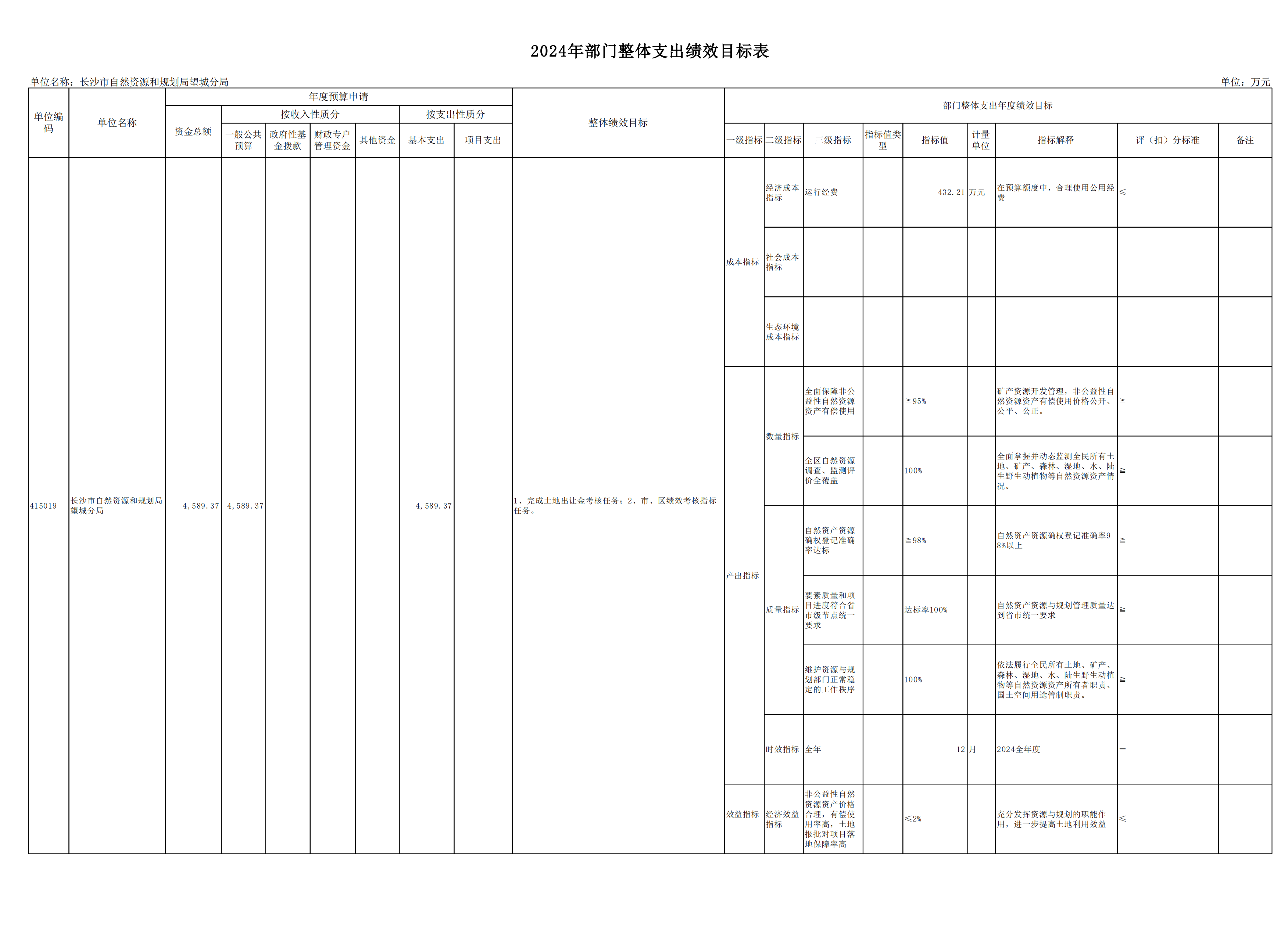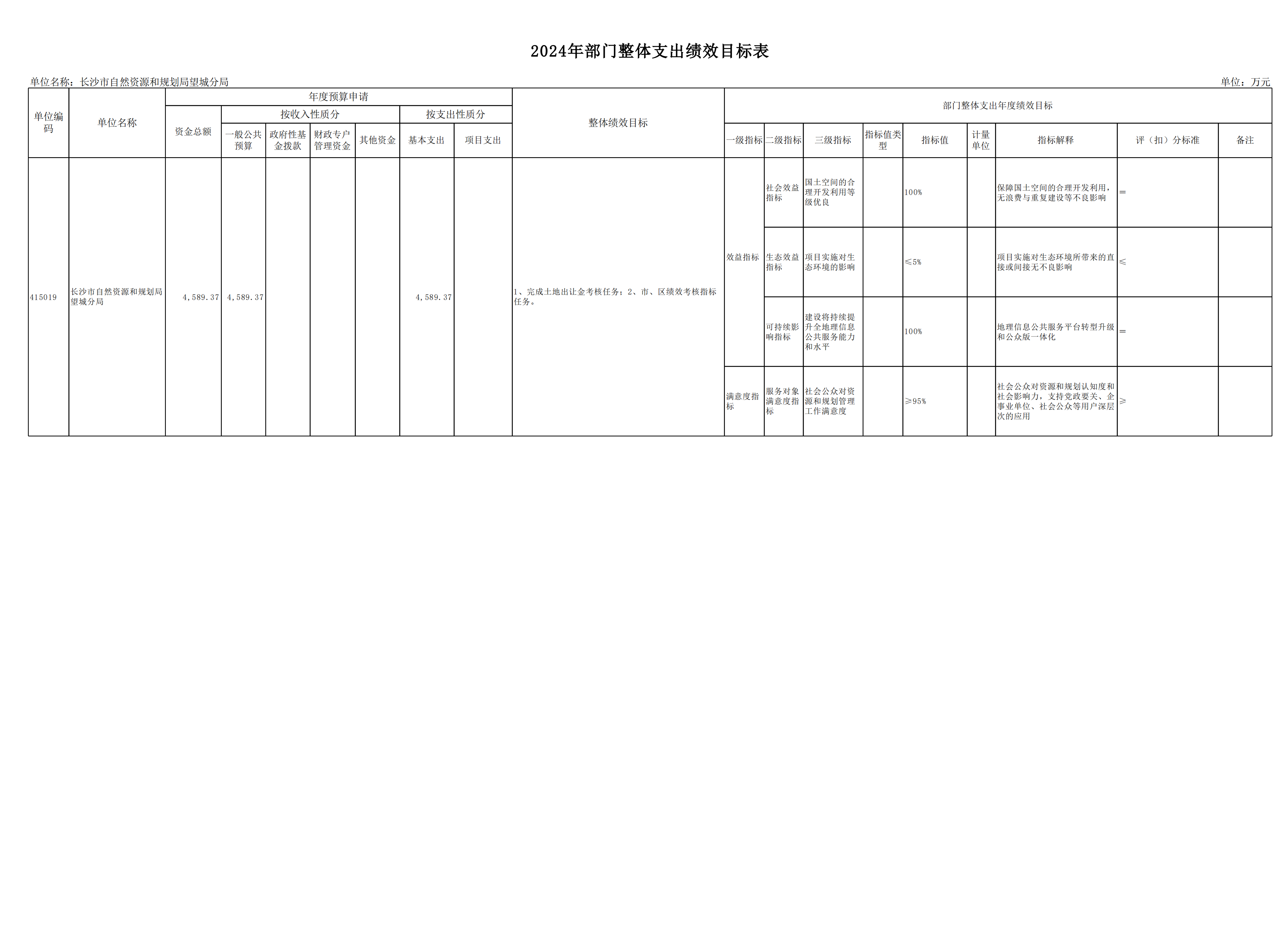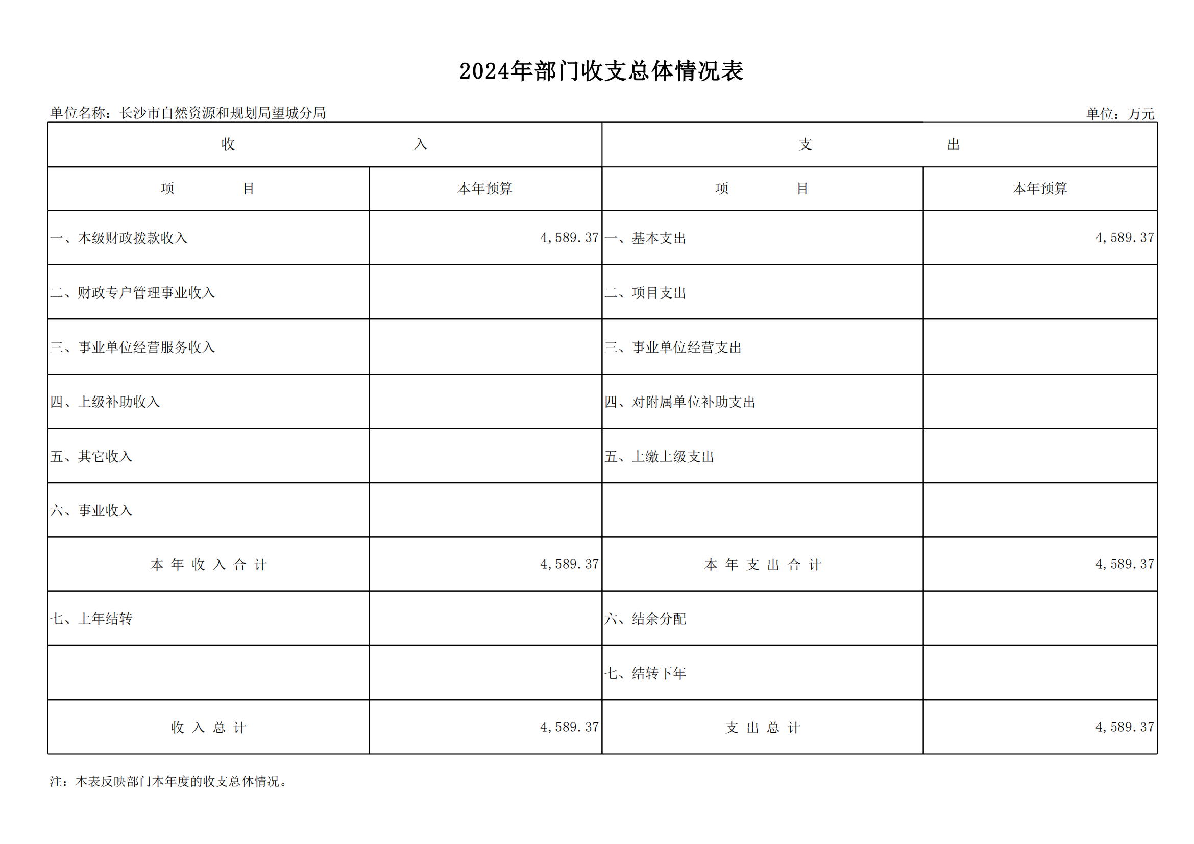 長沙市自然資源和規劃局望城分局 2024 年部門預算公開