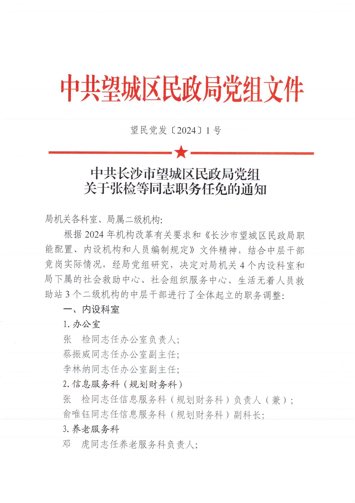 中共長沙市望城區(qū)民政局黨組關(guān)于張檢等同志職務(wù)任免的通知