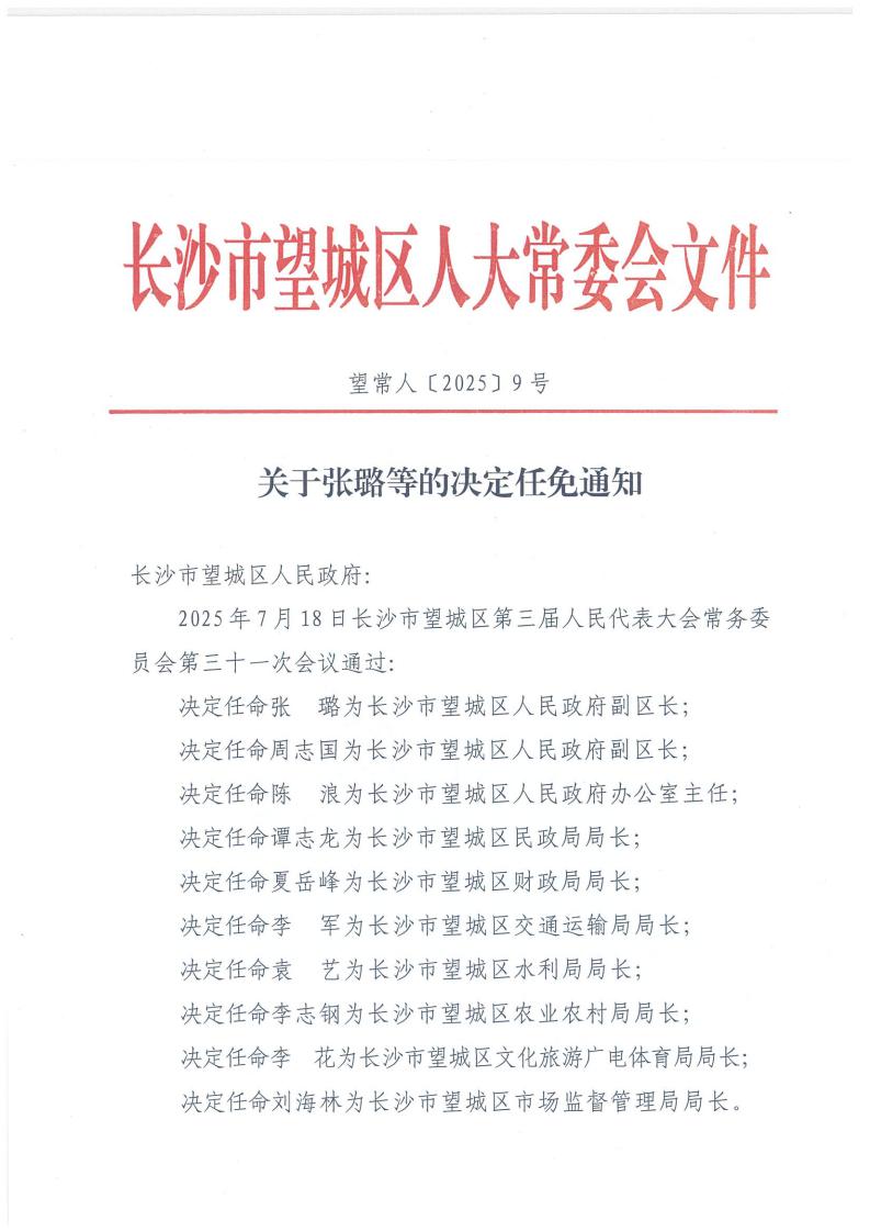 關于張璐等的決定任免通知(區民政局譚志龍)