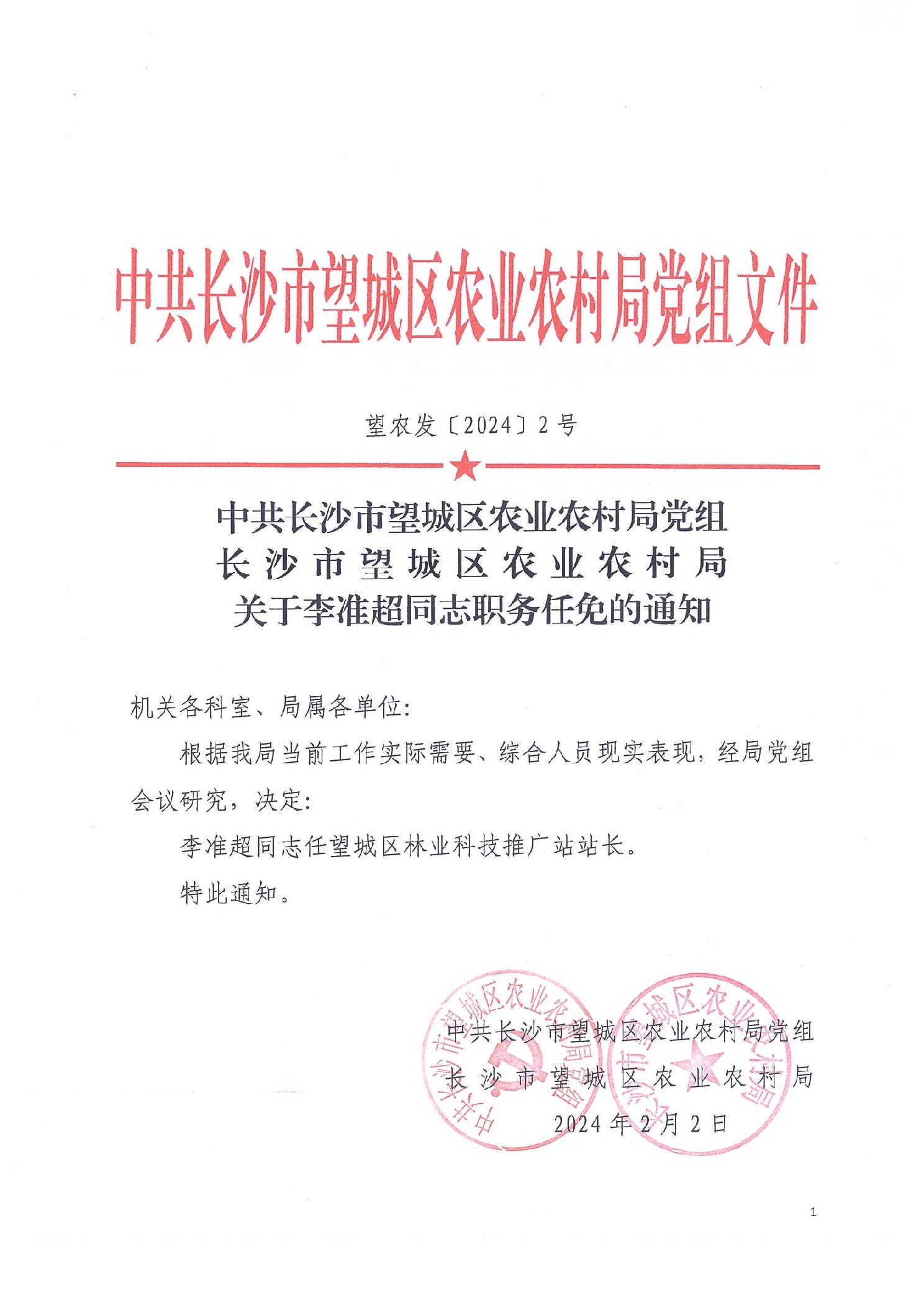 關于李準超同志職務任免的通知