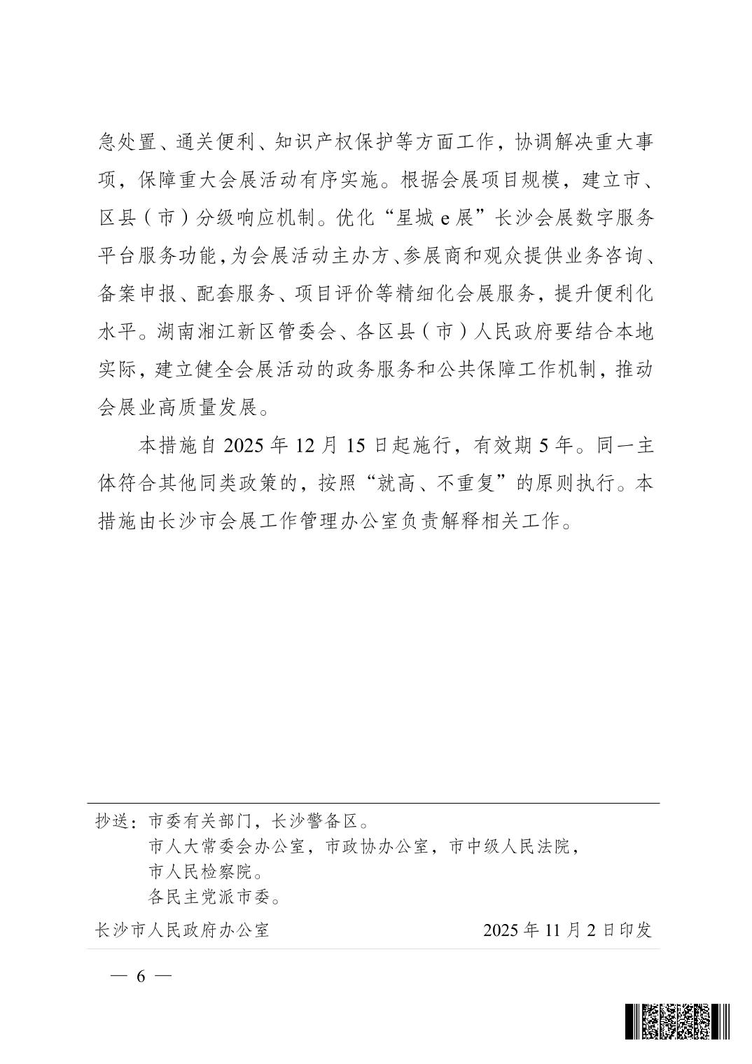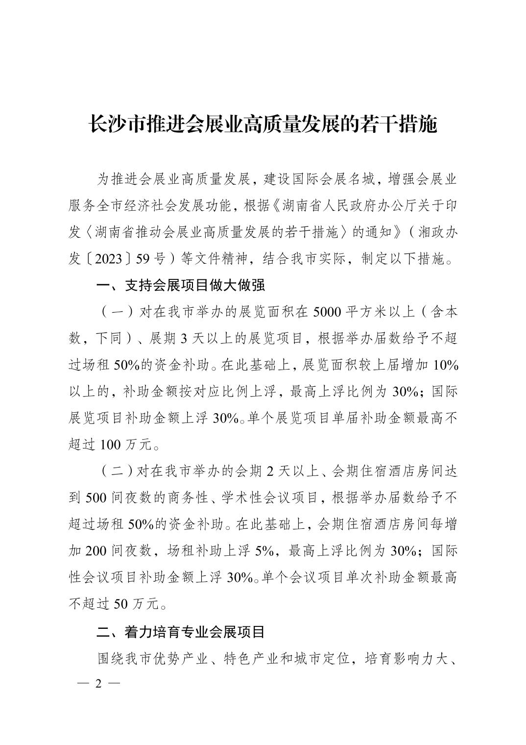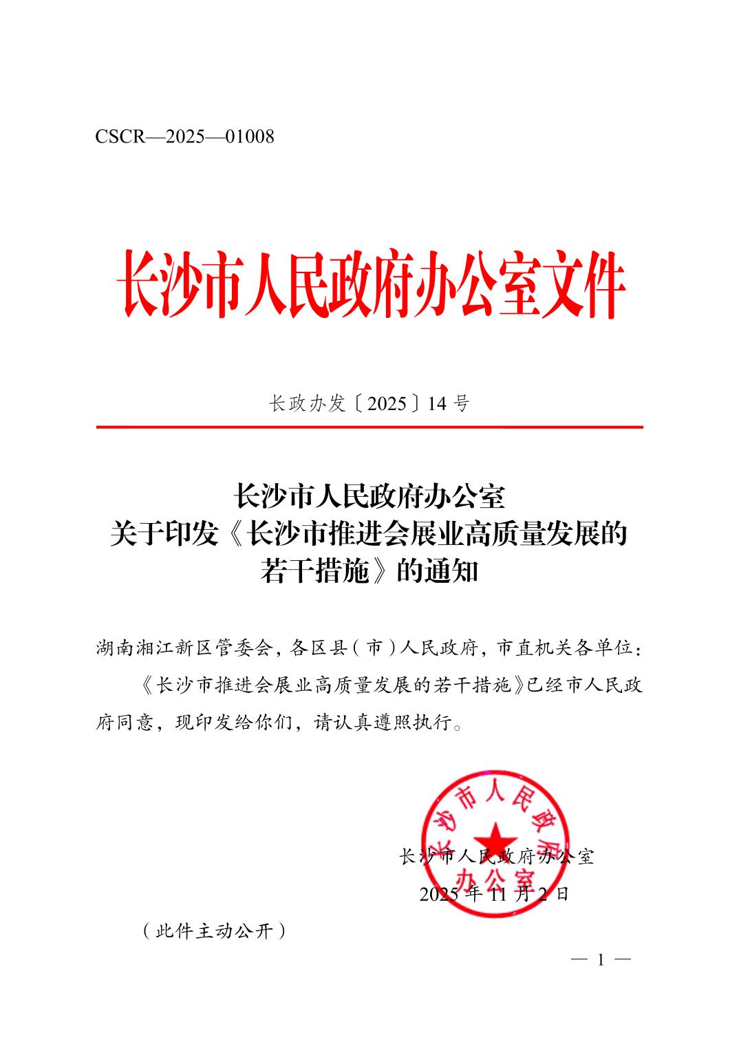 長(zhǎng)沙市人民政府辦公室 關(guān)于印發(fā)《長(zhǎng)沙市推進(jìn)會(huì)展業(yè)高質(zhì)量發(fā)展的若干措施》的通知