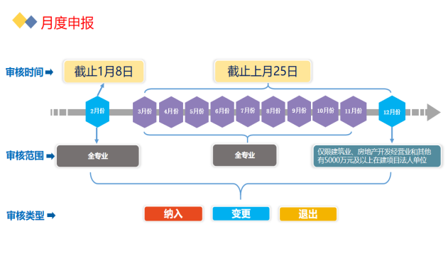 申報審核分年度(11月和12月兩批次)和月度(2月特進、3-12月逐月),具體時間以統計制度要求為準。