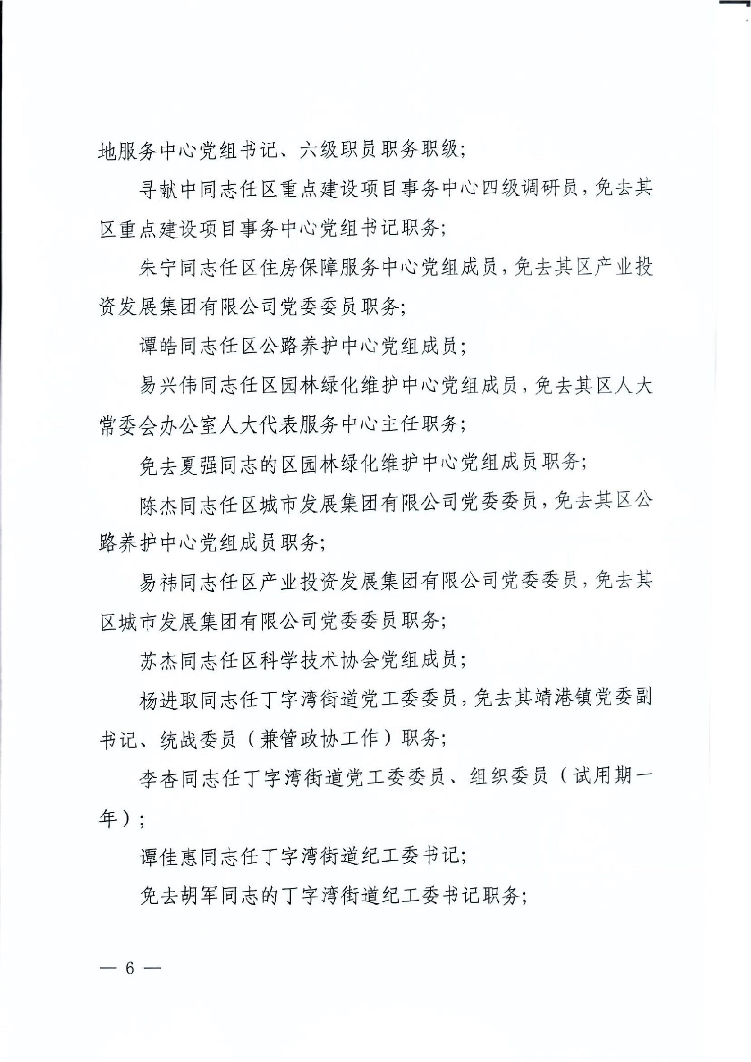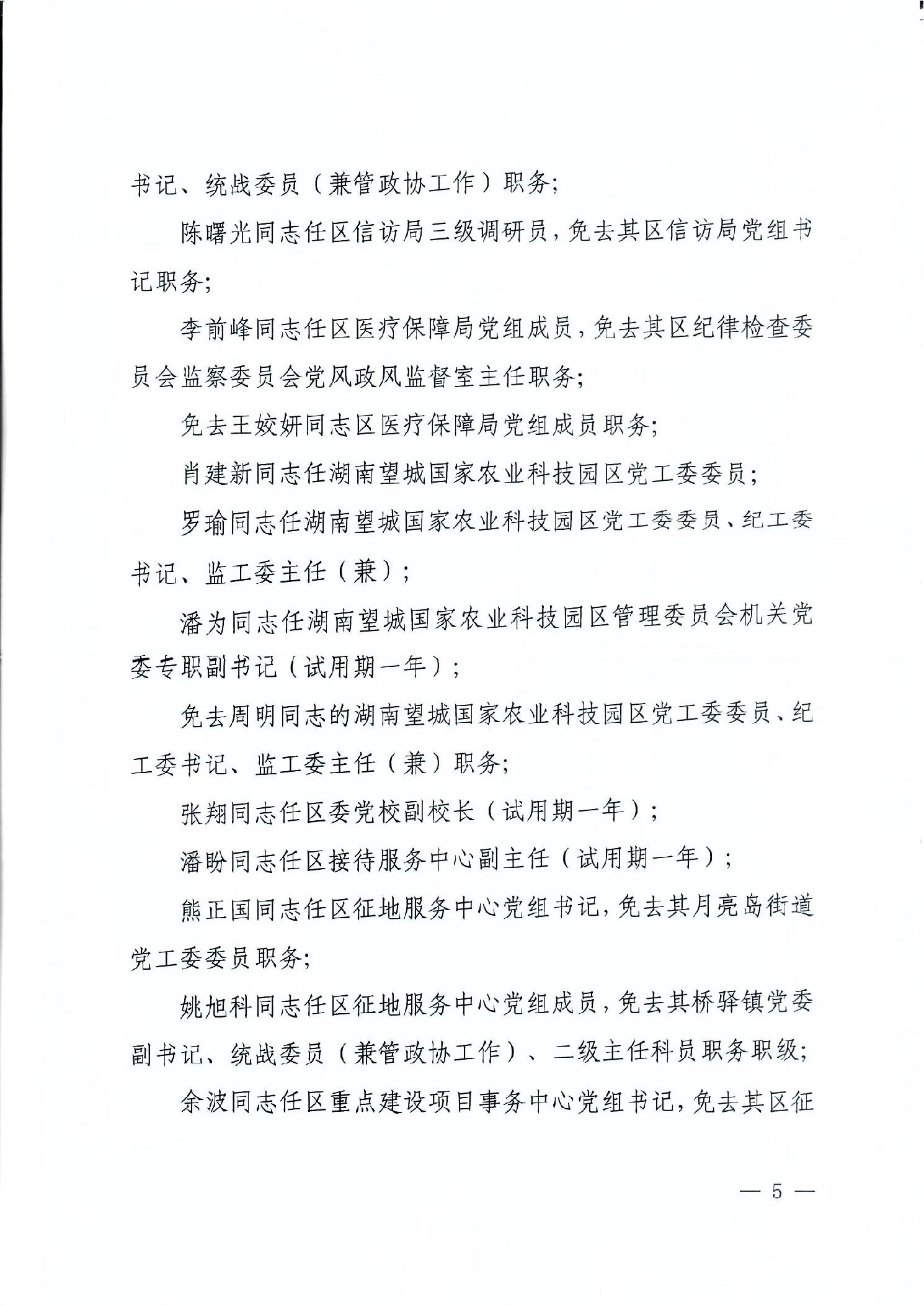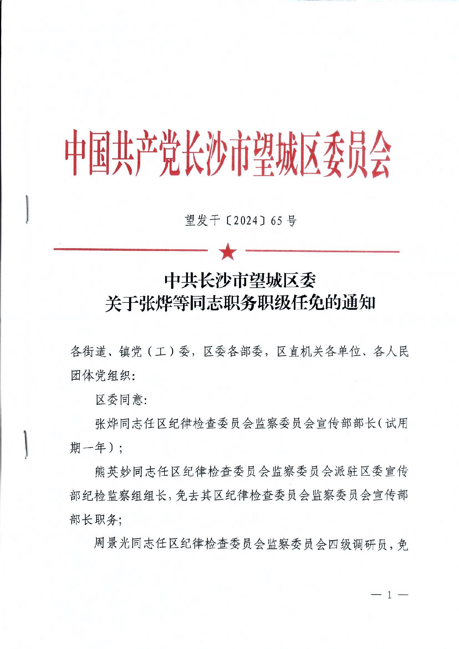 中共長沙市望城區委關于張燁等同志職務職級任免的通知
