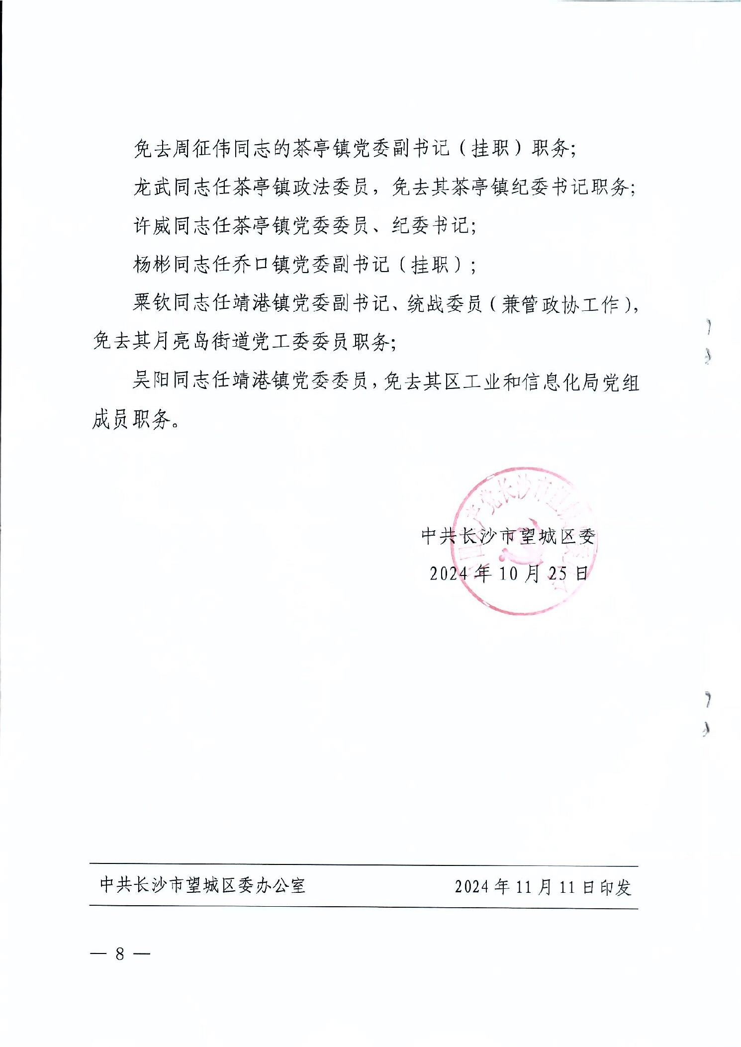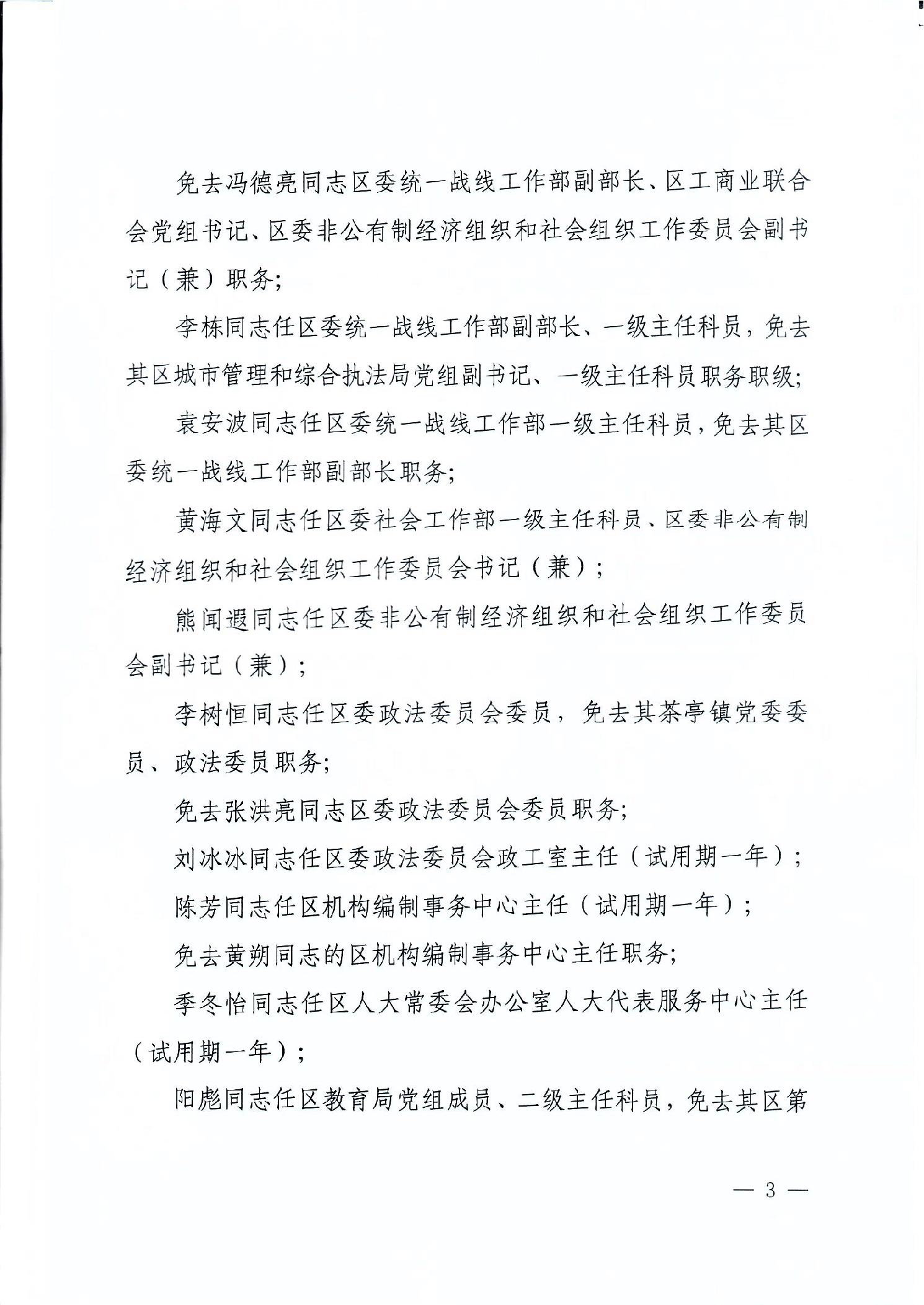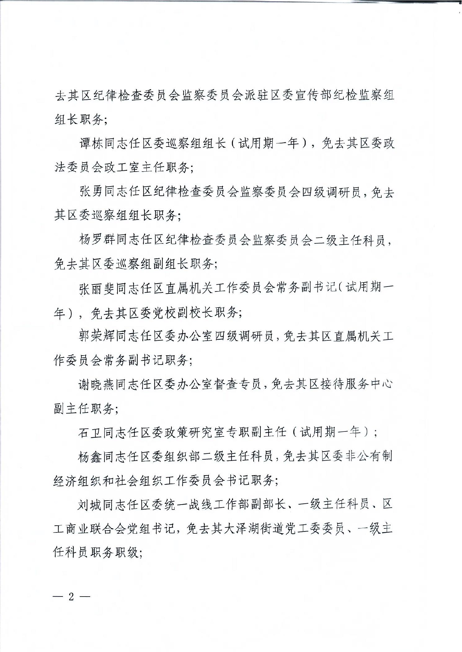 中共長沙市望城區委關于張燁等同志職務職級任免的通知