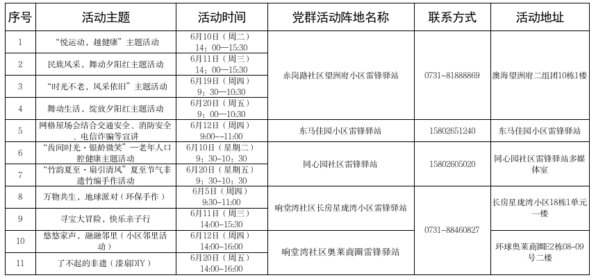 2025年6月白沙洲街道雷鋒驛站黨群活動計劃