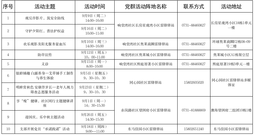 2025年9月白沙洲街道雷鋒驛站黨群活動計劃