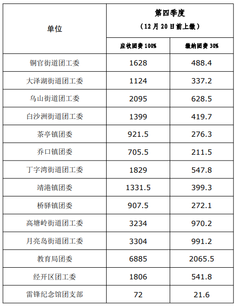 請各單位按照第四季度任務數于12月20日前通過和包支付將2024年第四季度團費上交至團區委。